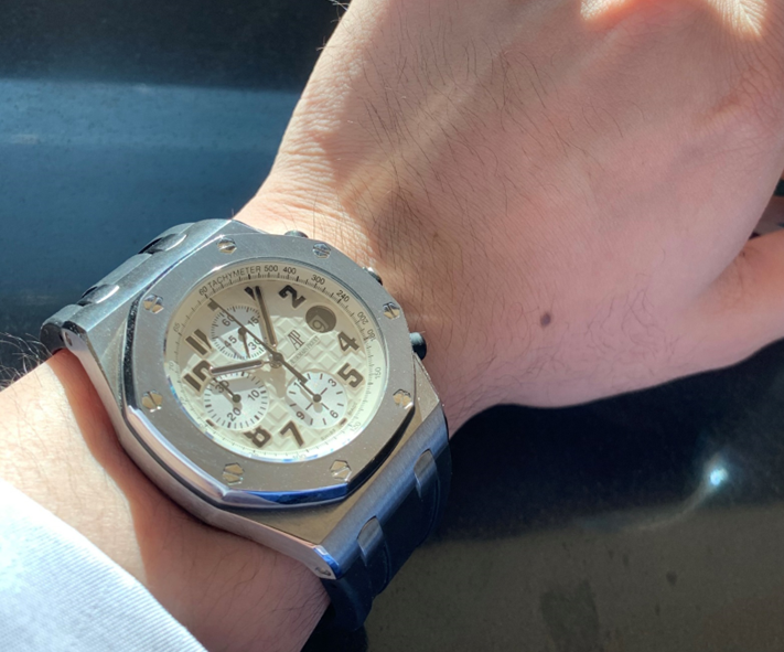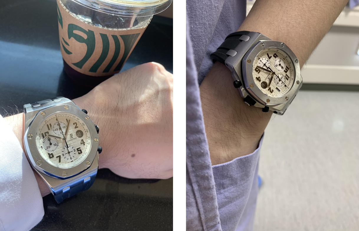 분명한 것은 로얄오크는 많은 이들의 드림워치가 되었고(그와 더불어 프리미엄의 상징이 되기도 했고) 다들 한번쯤은 경험해보고 싶은 시계가 되었다. 나 역시 크게 다르지 않았다. 가장 올리고 싶던 시계는 근-본인 로얄오크 점보 15202 모델, 혹은 37mm의 15450 청판 모델이었지만 리테일가의 2배 가까운 가격을 지불하고 싶지는 않았다. 이에 각종 리뷰글들과 장터를 둘러보던 중 조금은 비주류에 속하는 로얄오크 오프쇼어 모델을 알게되었고, 고민 끝에 그중에서도 크로노그래프 모델인 26170ST 사파리 모델을 들이게 되었다.