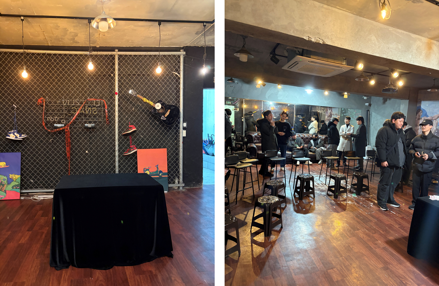 공연이 진행된 곳은 홍대에 위치한 스넥 연습실. 원래 합주실 + 안무연습실로 사용되는 공간을 공연으로 바꾼만큼 공연에 특화되어 있진 않았고, 20명의 관객이 앞줄과 뒷줄로 나누어 둘러앉아 공연 관람을 진행하는 방식이었다. 언제나처럼 대다수가 마술인들(각종 행사들에서 많이 본 분들)이었고, 나는 일찍 간 덕에 맨 앞자리에서 공연을 관람할 수 있었다. 공연 시간은 총 70분. 대기시간 내내 재생되던 묘하게 긴장감을 고조시키는 음악이 딱 끝나는 순간, 공연은 시작되었다.